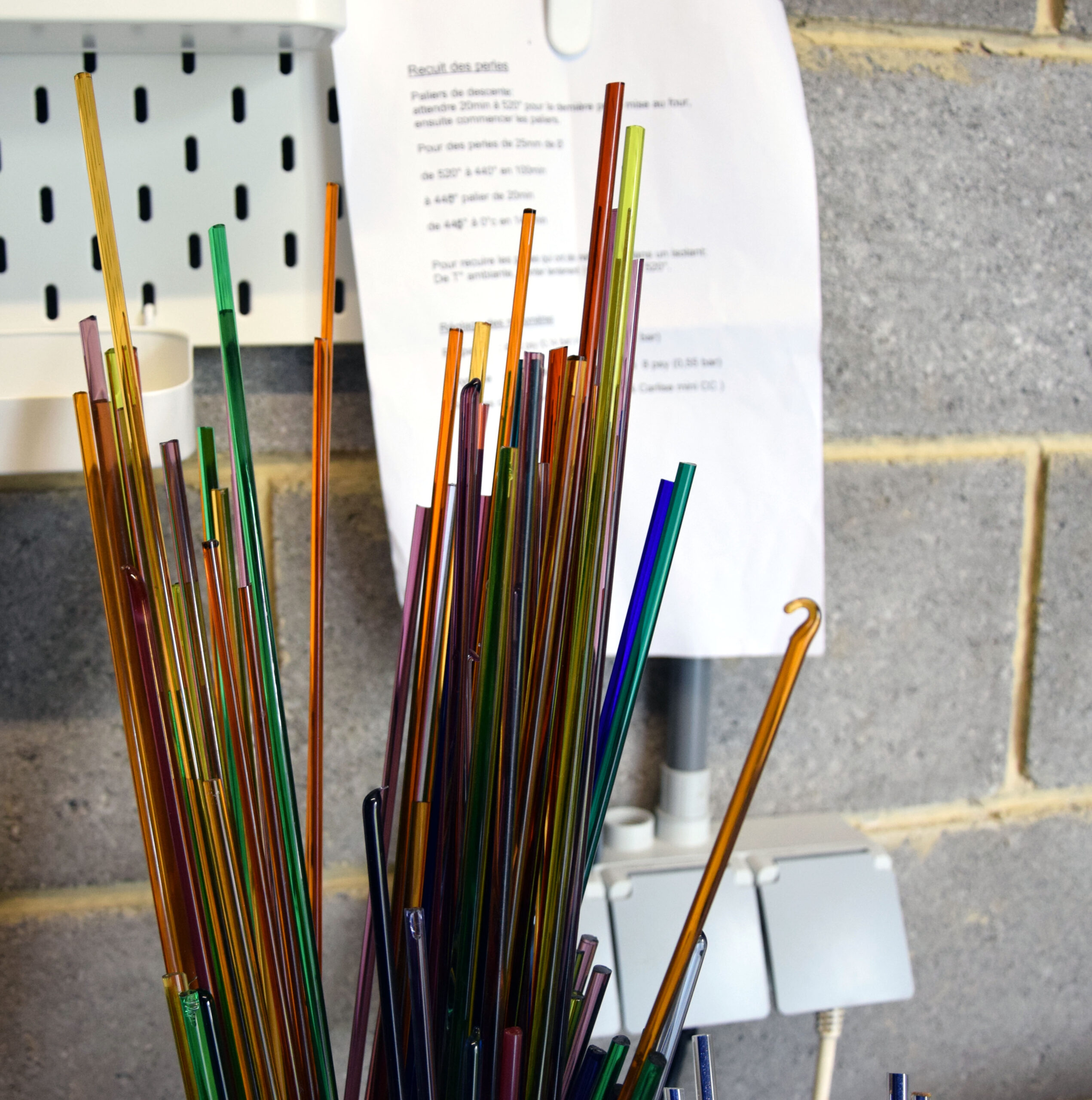 Récemment j’ai eu la chance de m’initier au soufflage de verre en atelier chez Christophe Genard, avec les gros fours et des bonbonnes de gaz plus grandes que moi. Ce fut une expérience unique, j’en suis revenue enchantée. Séduite par la découverte de la complexité de la matière j’ai cherché une solution pour pouvoir pratiquer cet art chez moi. La solution a été vite trouvée, le filage de verre au chalumeau ! J’ai ensuite enchainé stages et cours auprès d’artisans reconnus et ai décidé de créer mon propre atelier.